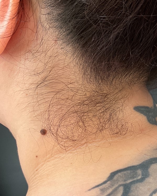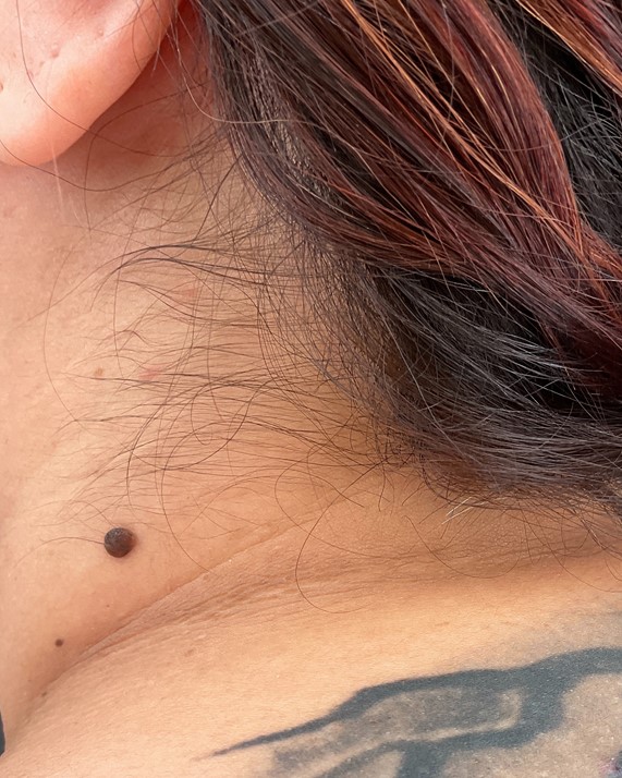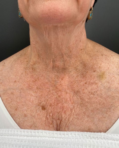 2 MOXI treatments 4 weeks apart to remove the PIH (brown) around her neck.